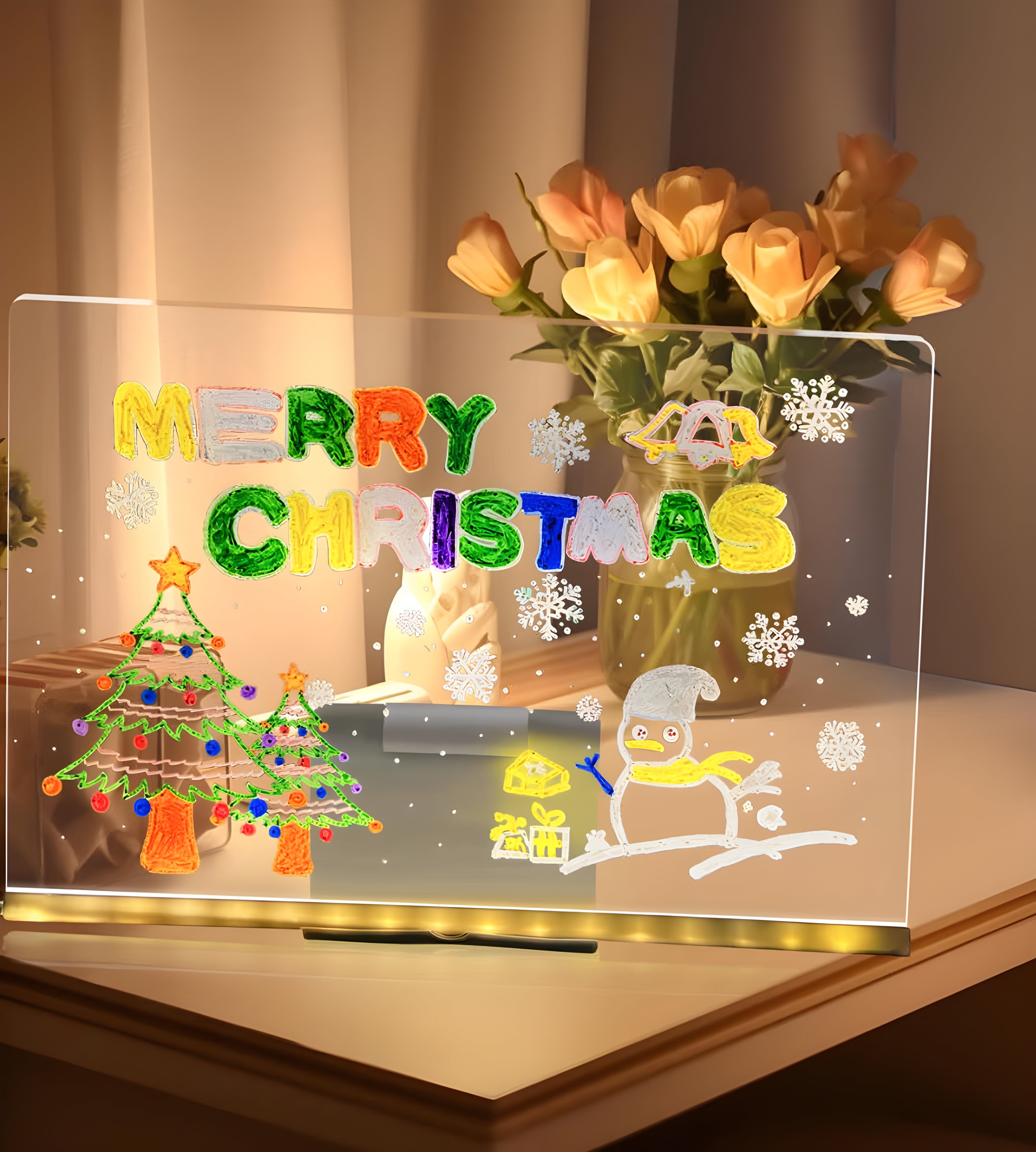 Köpte den till barnen, men nu använder vi den allihop. Vi ritar, skriver små meddelanden och planerar dagen direkt på tavlan. Den är lätt att rengöra och lyser så fint, en riktig vardagsfavorit!