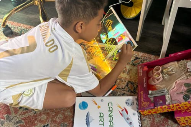 Vår dotter älskar att rita på sin GlowBoard varje kväll innan läggdags. Det bästa är att det inte blir något kladd, bara att torka av och börja om. Perfekt kvällsaktivitet utan skärm! -